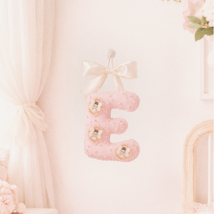 Designed as a stand-alone statement, this larger single letter is custom embroidered and beaded from your inspiration — perfect for your mini’s bedroom door or a special keepsake space.